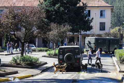 One of the most comically Chilean things I’ve seen: a pack of stray dogs chasing after the police during the protest.